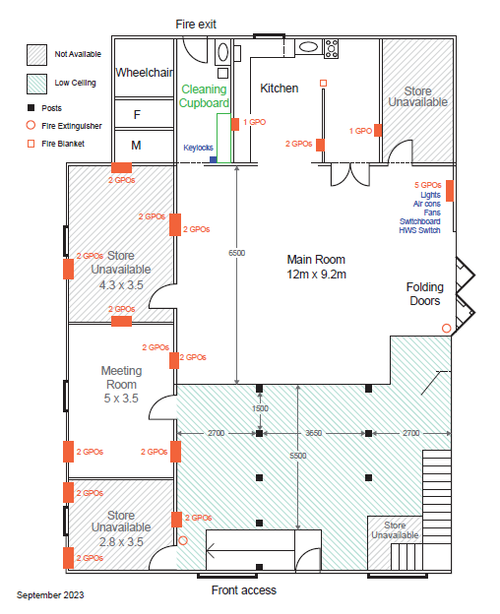 ● The space for hire is the main hall of the Baromi Centre as set out in the floor map attached (excluding the locked rooms). The Hirer or any guests may use the ancillary rooms coloured in green on the floor map.